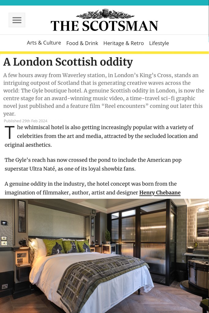 The Panharmonion Chronicles A genuine oddity, the hotel concept was born from the imagination of filmmaker, author, artist and designer Henry Chebaane. The Gyle boutique hotel – A genuine Scottish oddity in London, is now the centre stage for an award-winning music video, a time-travel sci-fi graphic novel just published and a feature indie film (…)